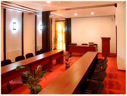 - Sala de conferinte cu o capacitate de 50 locuri,dotata cu ecran, flipchart.videoproiector si sonorizare.