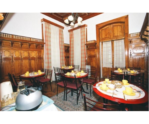 Sala de mese pentru micul dejun, impune printr-o impecabila curatenie si un minutios mis en place. Vila "Camelia" individualizata de proportionalitatea armonioasa a exterioarelor si personalitatea deosebita a interiorului, intruneste toate conditiile necesare pentru un sejur familial, intim si select.