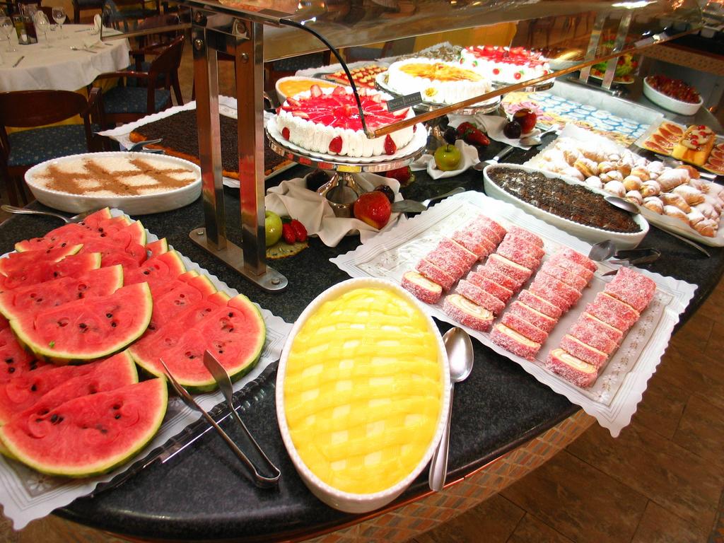 Restaurantul tip bufet, cu bucătărie deschisă, serveÈ™te mâncăruri mediteraneene È™i internaÈ›ionale. Hotelul oferă un bar cu pian, un bar la piscină È™i un program zilnic de activităÈ›i È™i divertisment.
