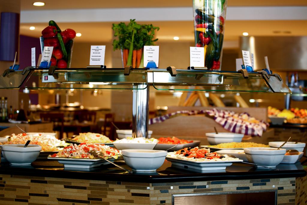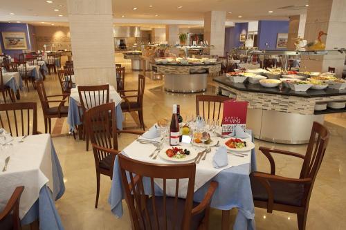 Restaurantul oferă un bufet mediteraneean, cu bucătărie deschisă și opțiuni speciale pentru copii. Există și un piano bar cu muzică live, precum și un program de divertisment variat pentru adulți și copii.