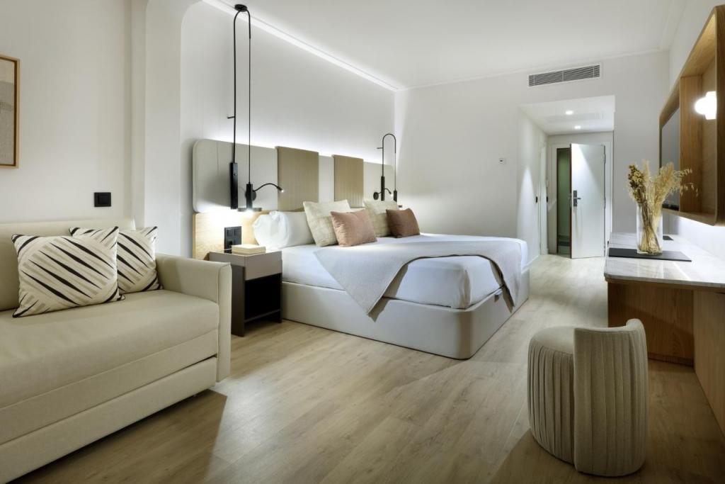 Grand Palladium Select Palace Ibiza, recent renovat în 2023, oferă camere și suite junior spațioase și moderne, fiecare cu balcon sau terasă privată și Wi-Fi gratuit în întreaga proprietate.