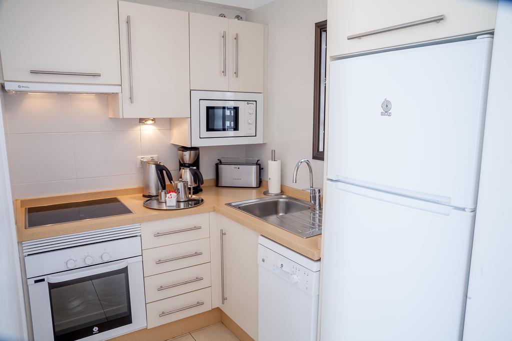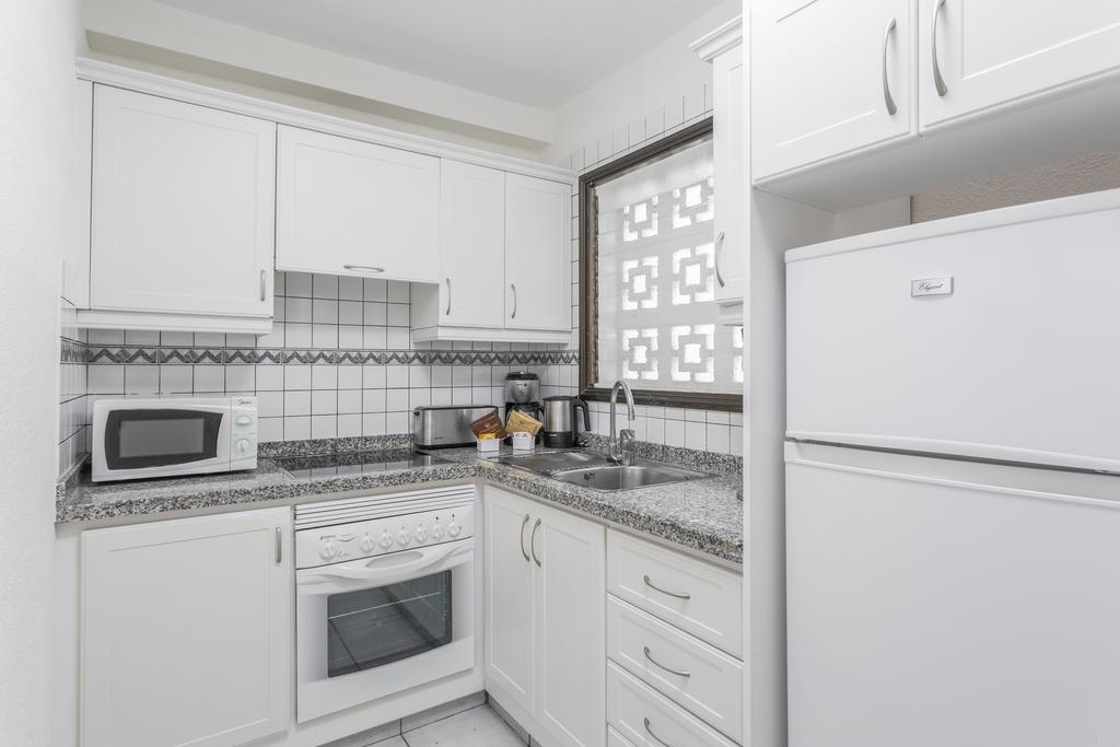 Apartamentele de la Hotelul Sunset Bay Club au pardoseală din gresie și mobilier din lemn. Bucătăriile sunt utilate cu plită, cuptor È™i aparat de cafea. Toate apartamentele au balcon privat.
