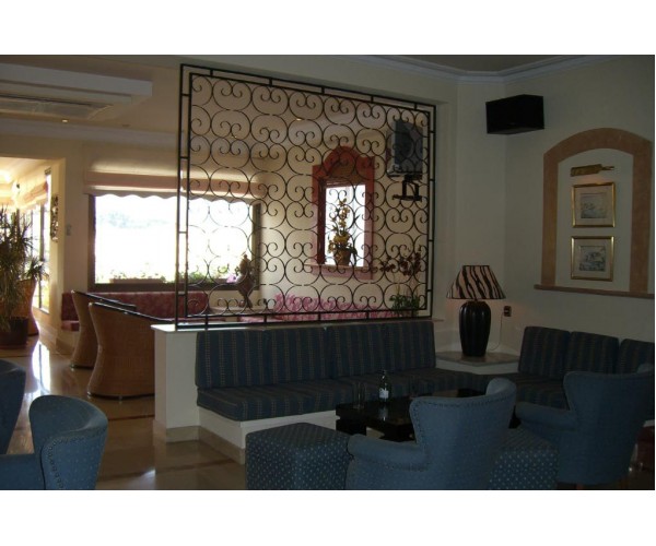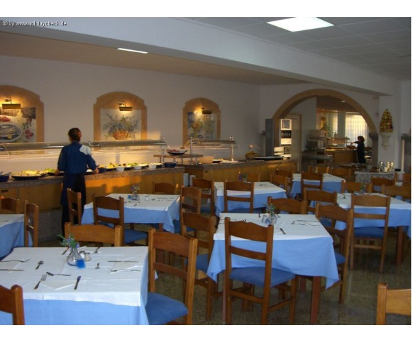 Hotelul este alcatuit dintr-un corp de 5 etaje cu 66 camere duble standard (o parte mare cu vedere spre mare, max. 2 pers.), 21 camere single (baie cu dus, max. 1 pers.), 17 apartamente cu un dormitor (dormitor cu usa, living, bucatarie complet utilata) si 6 apartamente cu doua dormitoare (doua dormitoare cu usa, living, bucatarie complet utilata). Hotelul dispune de 2 piscine (una exterioara, una acoperita si incalzita), sezlongurile si umbrelele fiind gratuite. Gratuit: