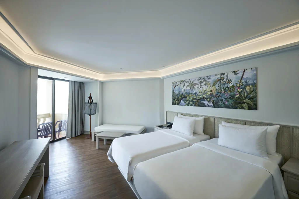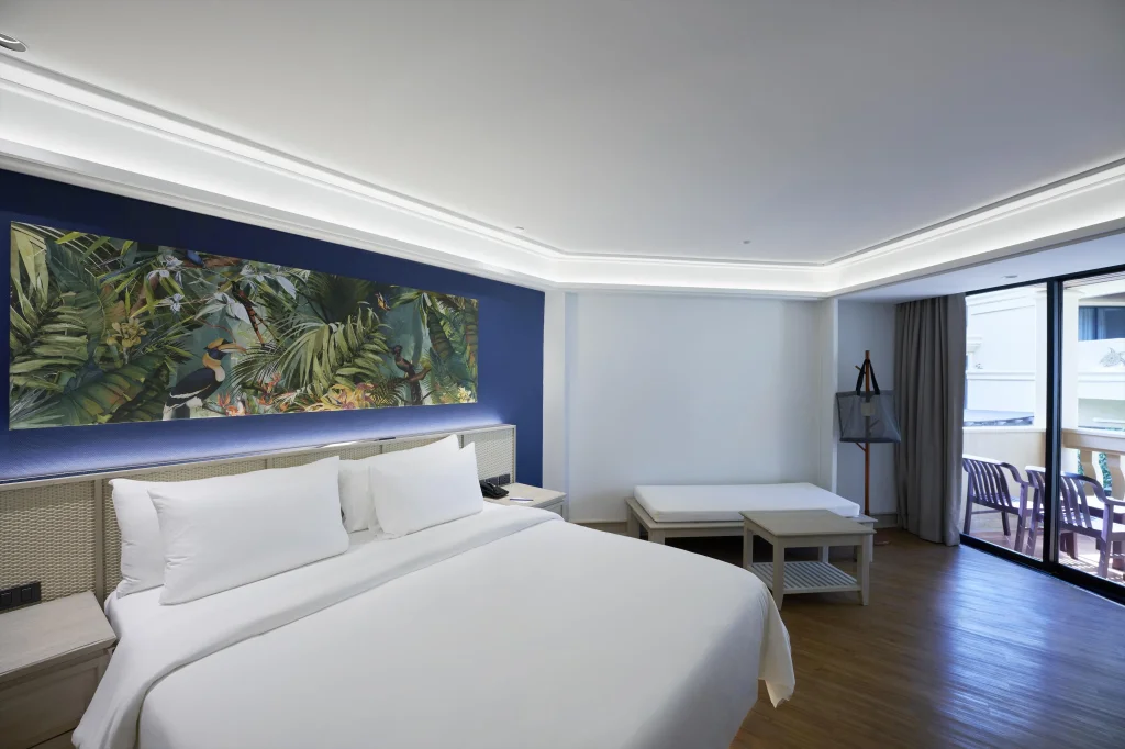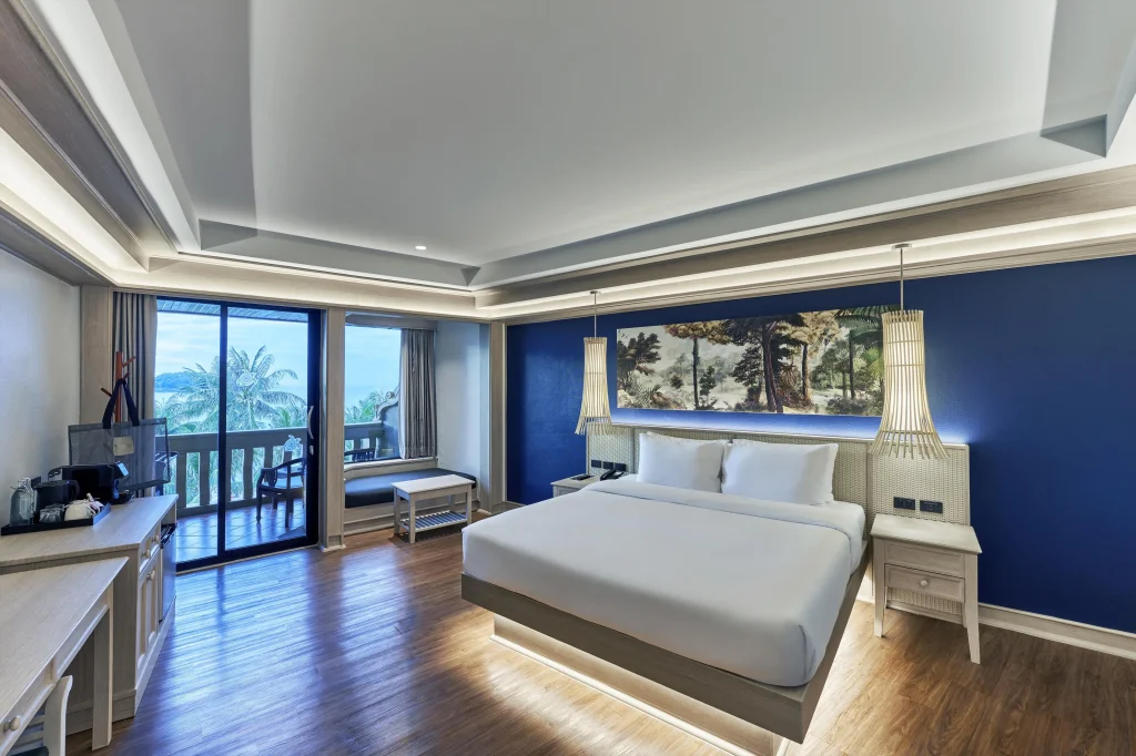 Junior Suite Room — 56 m², cea mai generoas? unitate de cazare a resortului, cu balcon spa?ios, halate ?i papuci, dot?ri complete ?i suficient spa?iu pentru a transforma camera într-un adev?rat refugiu de lux în inima Phuketului.