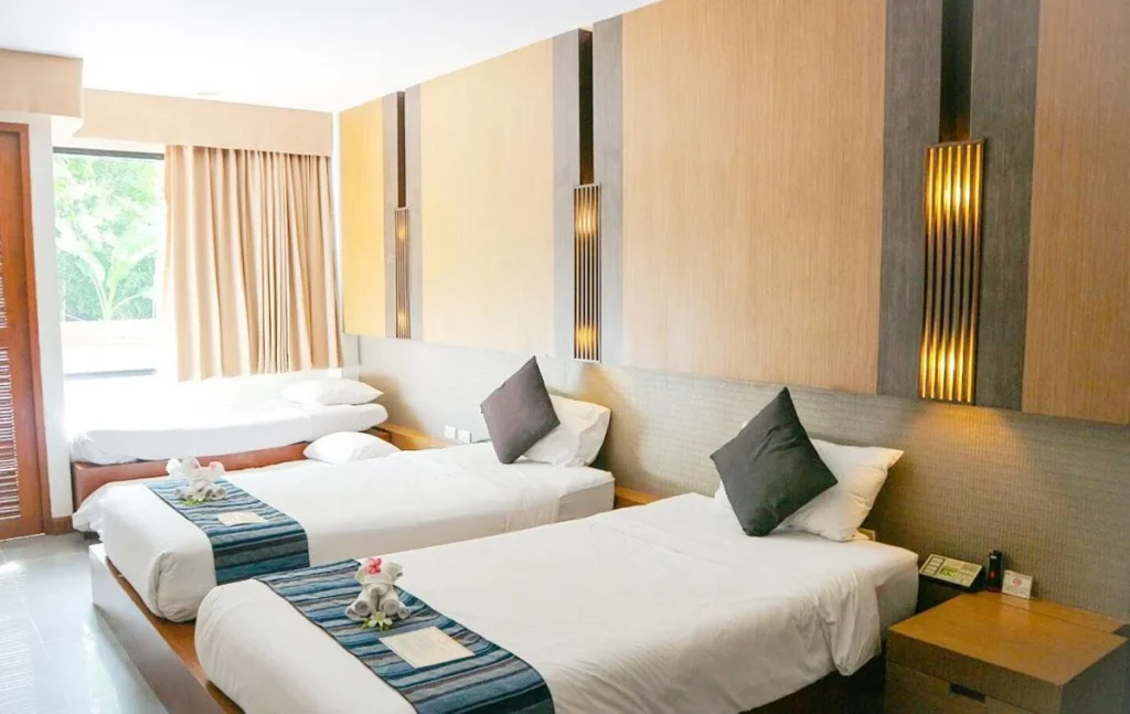 Peach Blossom Resort impresioneza prin varietatea tipurilor de cazare, de la camere Grand Deluxe pana la vile cu piscina privata, prin facilitatile complete pentru familii — club copii, piscina pentru cei mici si meniu dedicat — si prin centrul Spa care transforma orice sejur intr-o adevarata experienta de relaxare. Un aspect de luat in considerare: plaja Karon se afla la 250 de metri de hotel, asadar nu veti fi chiar pe malul marii, insa distanta este usor de parcurs pe jos. Cazarea la Peach Blossom Resort este recomandata in special familiilor cu copii, cuplurilor care doresc intimitate si relaxare, dar si calatorilor independenti atrasi de frumosul Phuket thailandez.