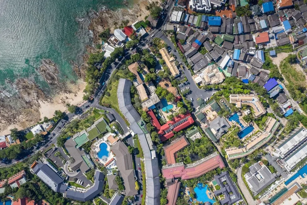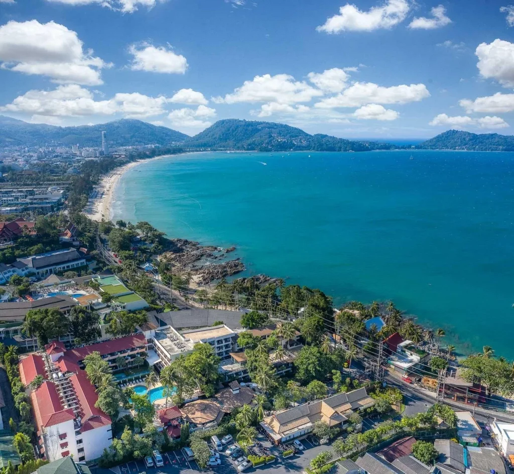 Patong Lodge Hotel se afla la doar 230 de metri de plaja cu nisip fin, pozitionat strategic intre celebra Kalim Beach si capatul nordic al plajei Patong, una dintre cele mai cunoscute destinatii balneare din Thailanda. Hotelul este inconjurat de vegetatie tropicala luxurianta si beneficiaza de o vedere spectaculoasa spre plaja Kalim si Golful Andaman. Centrul statiunii Patong, cu multitudinea sa de restaurante, baruri, magazine si viata de noapte, se afla la aproximativ 15 minute distanta, oferindu-ti libertatea de a alege intre relaxarea in liniste si imersiunea in atmosfera animata a orasului. Aeroportul International Phuket se afla la aproximativ 30 de kilometri de hotel, accesibil cu taxiul sau serviciile de transfer.
