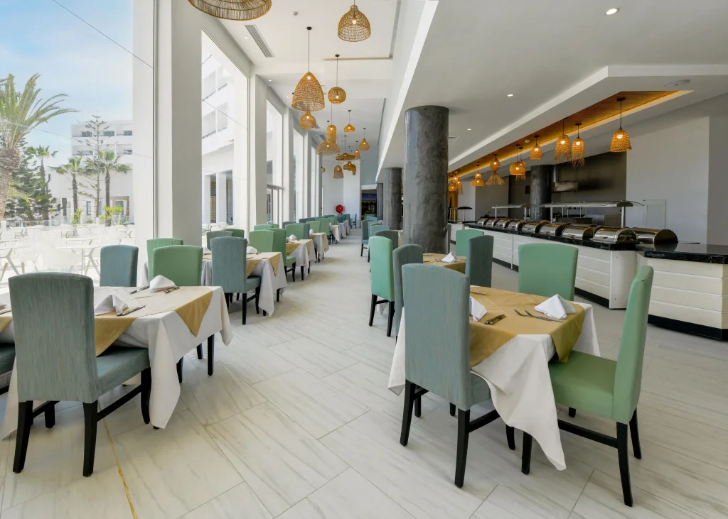 Sejurul la Blue Beach se desfasoara in regim All Inclusive, care include trei mese principale zilnice servite la bufet: mic dejun, pranz si cina. Pe parcursul zilei sunt disponibile gustari usoare pentru a potoli foamea intre mese. Bauturile racoritoare nelimitate la robinet si bauturile alcoolice locale sunt incluse in program in intervalul orar 10:00 - 24:00. Este important de mentionat ca bauturile internationale nu sunt incluse in pachetul standard all inclusive si se platesc separat. Programul complet de mese si bauturi asigura o vacanta fara griji, in care turistii se pot bucura din plin de tot ce ofera hotelul.