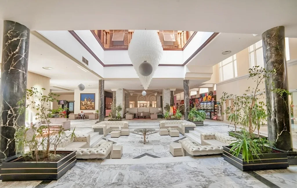 Hotel Liberty pune la dispozi?ia oaspe?ilor un hol spa?ios de intrare cu recep?ie non-stop, lift, serviciu de schimb valutar ?i un magazin de cadouri. Complexul include o piscin? exterioar? înconjurat? de o teras? generoas? cu ?ezlonguri ?i umbrele gratuite, completat? de un bar la piscin? pentru r?coritoare ?i b?uturi. Pe perioada în afara sezonului de vârf, func?ioneaz? ?i o piscin? interioar?, astfel încât relaxarea acvatic? este garantat? indiferent de perioad?. Zona de restaura?ie cuprinde un restaurant principal, un restaurant à la carte, un lobby bar ?i o cafenea maur? cu atmosfer? oriental? autentic?. Hotelul dispune de coafor ?i sal? de conferin?e pentru diverse necesit??i. WiFi gratuit este disponibil în holul hotelului. Pe plaj?, oaspe?ii beneficiaz? de ?ezlonguri ?i umbrele gratuite, precum ?i de un bar dedicat.