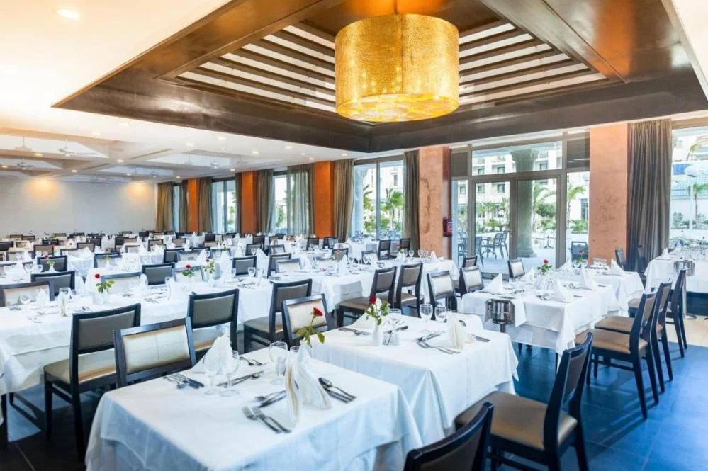 Sejurul la Barcelo Concorde Green Park Palace se desfasoara in regim all inclusive, care include micul dejun, pranzul si cina servite sub forma de bufet bogat, precum si o gustare de dupa-amiaza. Bauturile alcoolice si nealcoolice de productie locala sunt incluse zilnic intre orele 10:00 si 01:00. O data pe saptamana, turistii pot lua masa la restaurantul a la carte, cu rezervare prealabila. Este important de mentionat ca la cina este necesara o tinuta formala (pantaloni lungi pentru barbati), un detaliu elegant care reflecta standardele ridicate ale acestui hotel de 5 stele. Bauturile internationale nu sunt incluse in pachetul all inclusive standard.