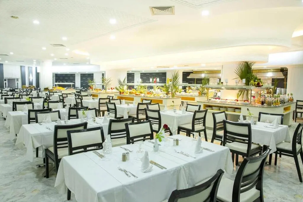 Sejurul în regim All Inclusive acoper? toate mesele principale – mic dejun, prânz ?i cin?, toate servite sub form? de bufet bogat în restaurantul principal. Pe parcursul zilei, oaspe?ii beneficiaz? de o gustare u?oar?, iar dup?-amiaza sunt servite cafea, ceai ?i pr?jituri. B?uturile alcoolice ?i nealcoolice de produc?ie local? sunt incluse zilnic între orele 10:00 ?i 23:00. Este important de re?inut c? b?uturile interna?ionale (import) nu sunt incluse în pachetul all inclusive ?i se achit? separat. Barul de pe plaj? completeaz? oferta, asigurând r?coritoare ?i b?uturi direct pe nisip.