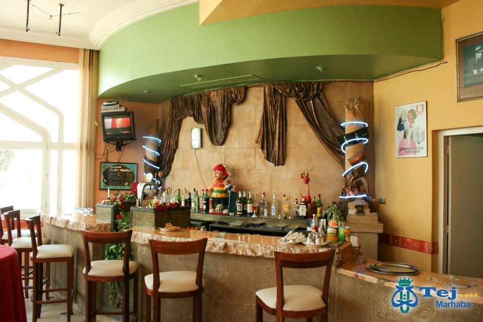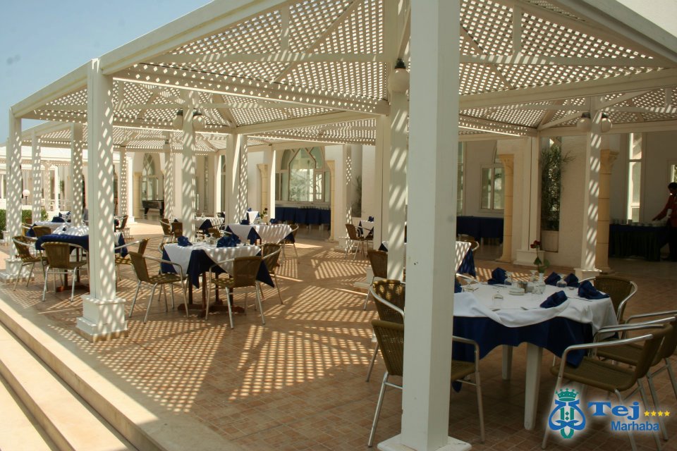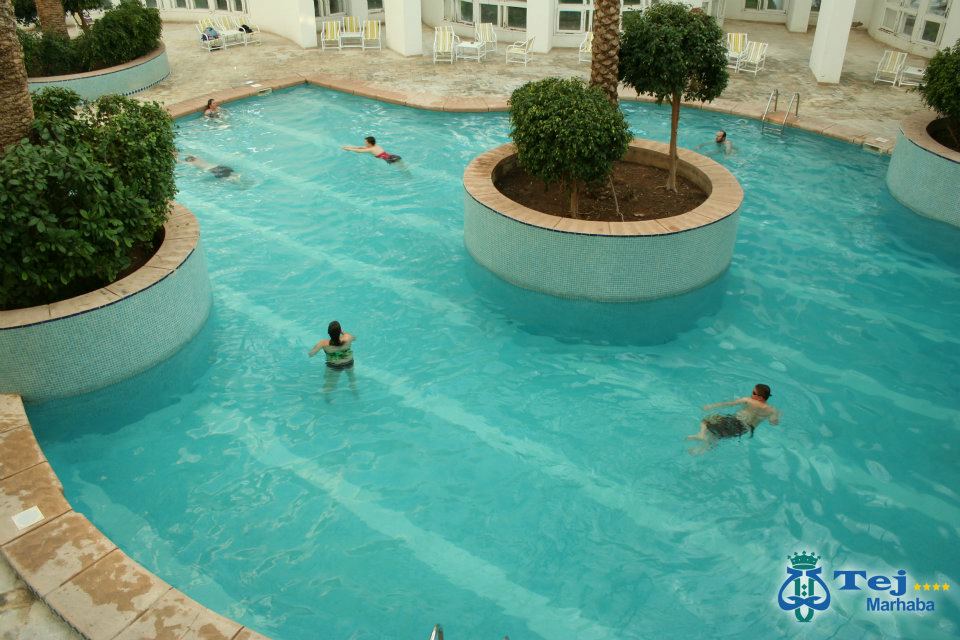 Hotelul Tej Marhaba are o piscină în aer liber în aer liber, cu o secÈ›iune pentru copii, înconjurată de grădini spaÈ›ioase, cu È™ezlonguri È™i umbrele. Există, de asemenea, o piscină interioară È™i un Spa (tarif local) care oferă servicii de masaj, o saună È™i o baie turcească.