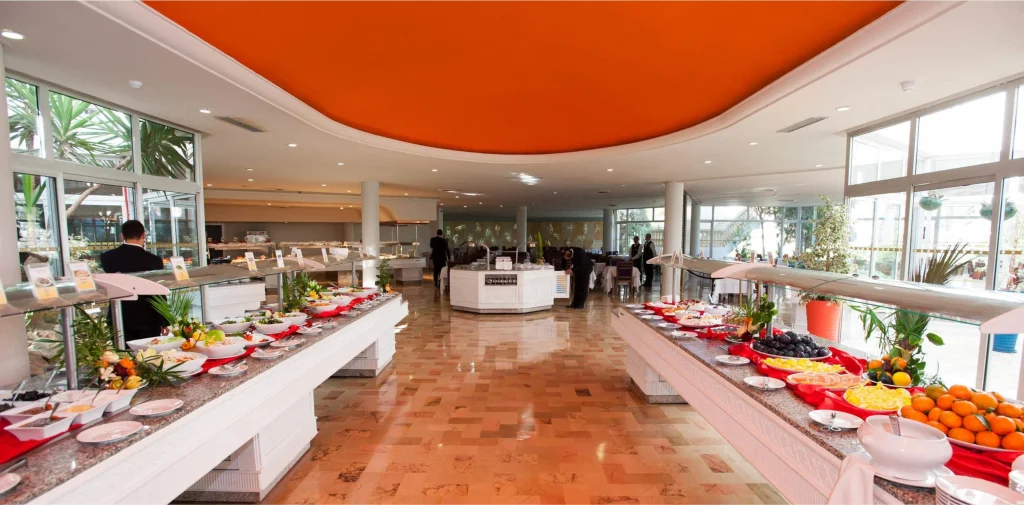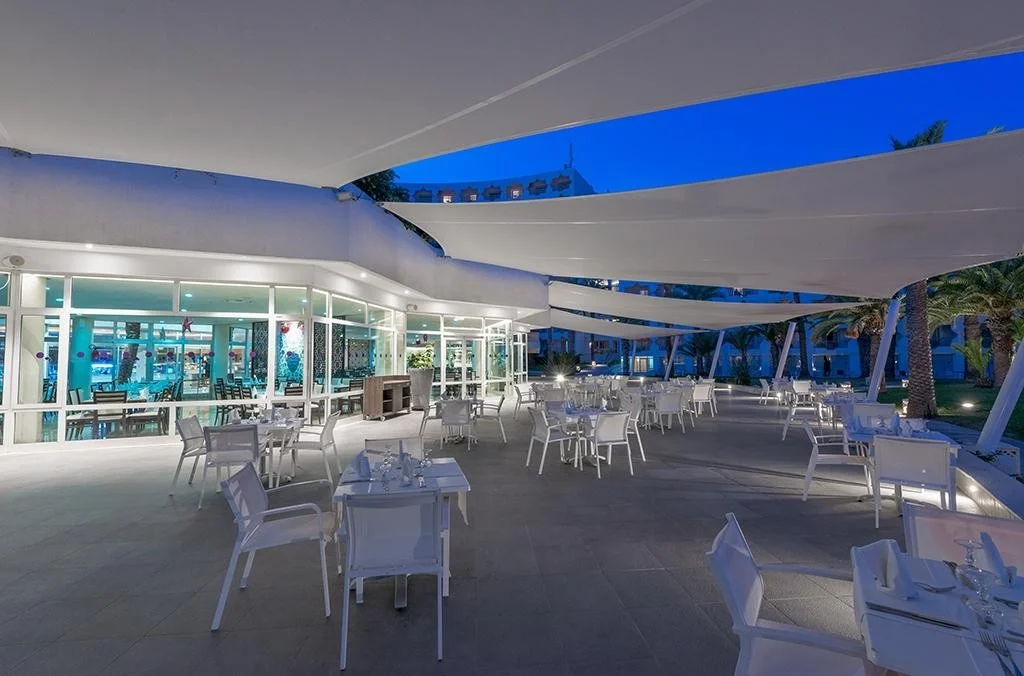 Hotel ofer? un pachet all inclusive complet, care include micul dejun, prânzul ?i cina sub form? de bufet bogat, cu preparate variate din buc?t?ria local? ?i interna?ional?. Pe parcursul zilei sunt disponibile gust?ri u?oare pentru momentele dintre mese. B?uturile alcoolice ?i nealcoolice produse local sunt disponibile nelimitat la robinet, în intervalul orar 10:00–23:00. Este important de re?inut c? sunt incluse doar b?uturile de produc?ie local?, nu ?i cele interna?ionale premium. Not?: în timpul cinei este solicitat? o ?inut? formal?, un detaliu de elegan?? care confer? serilor o atmosfer? deosebit?. Barul de pe plaj? este de asemenea inclus în pachetul all inclusive, permi?ând oaspe?ilor s? se r?coreasc? f?r? s? se îndep?rteze de mare.