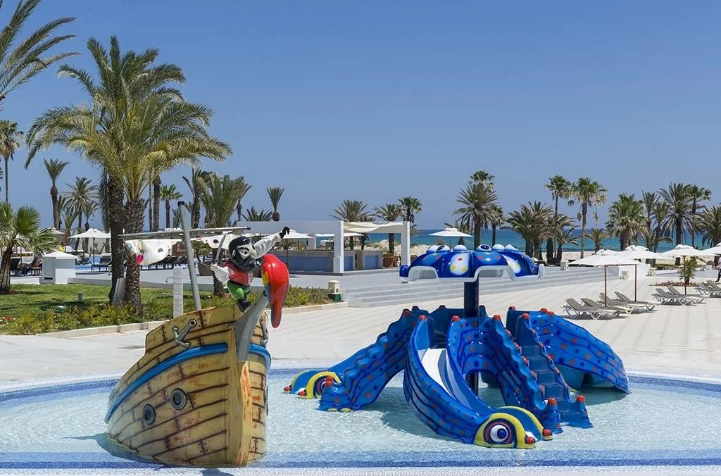 Hotel din Sousse se remarc? prin pozi?ia sa direct? pe plaja cu nisip fin, prin pachetul all inclusive generos cu b?uturi nelimitate ?i prin varietatea facilit??ilor destinate atât adul?ilor, cât ?i copiilor. Un aspect de luat în considerare: Wi-Fi-ul gratuit este disponibil doar în zona recep?iei, nu în camere. Hotelul este recomandat în special familiilor cu copii care apreciaz? facilit??ile acvatice ?i anima?ia, dar ?i cuplurilor care doresc un sejur de 5 stele cu acces direct la plaj? ?i posibilitatea de a explora cultura fascinant? a Tunisiei.