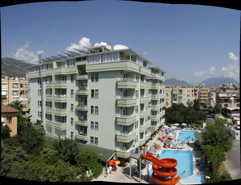 Hotelul a fost construit în 1997 și complet renovată în 2011 și constă dintr-un total de 114 camere în 2 clădiri pe 7 etaje. Situat la doar 800m de centrul orașului Alanya și la numai 300m de plaja, Hotelul este situat ideal pentru cei care doresc să fie aproape de facilitățile locale. Oaspeții pot beneficia de facilitățile hotelului, care includ un salon de coafură, un colț de TV si internet, un bar și restaurantul, precum grădina hotelului atractive 600sqm cu terasă de plajă și 2 piscine.