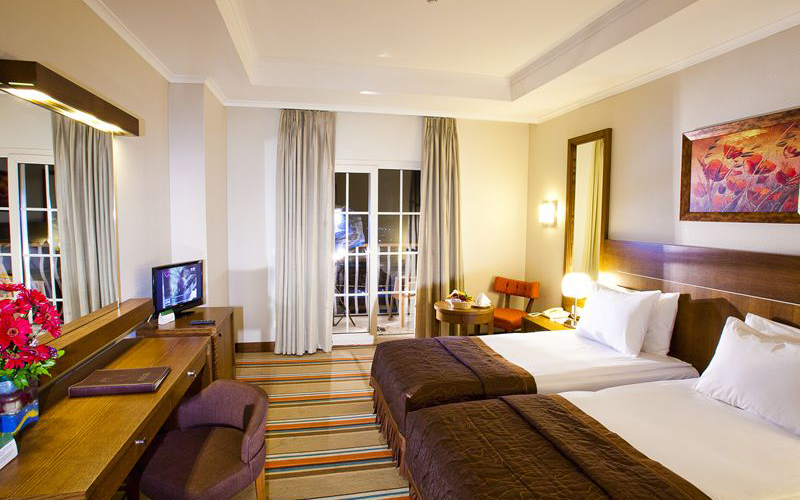 Camerele de la Asteria Sorgun Resort oferă aer condiționat, TV cu canale prin satelit și minibar. Fiecare cameră include balcon cu vedere la grădină sau la mare.