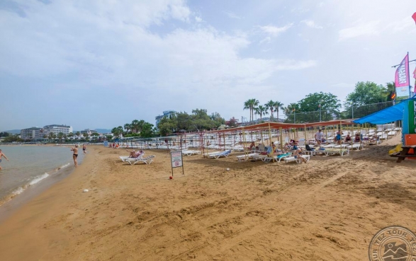 Proprie, nisip. Bar pe plaja: gratuit. La piscina si pe plaja: umbrele, sezlonguri, saltele - gratuit. Prosoape de plaja: nu se ofera.