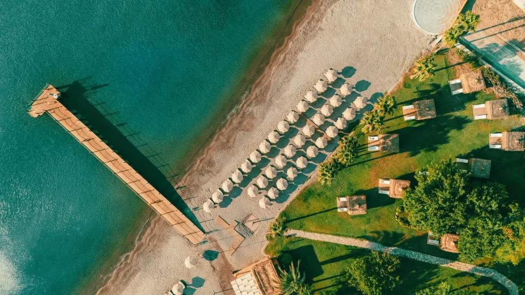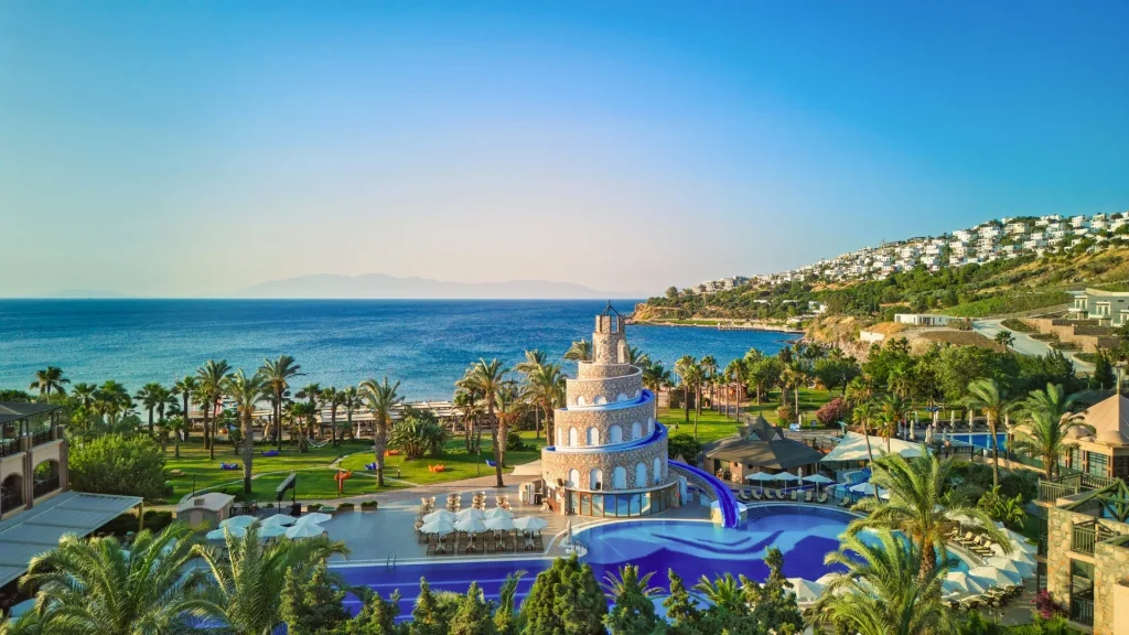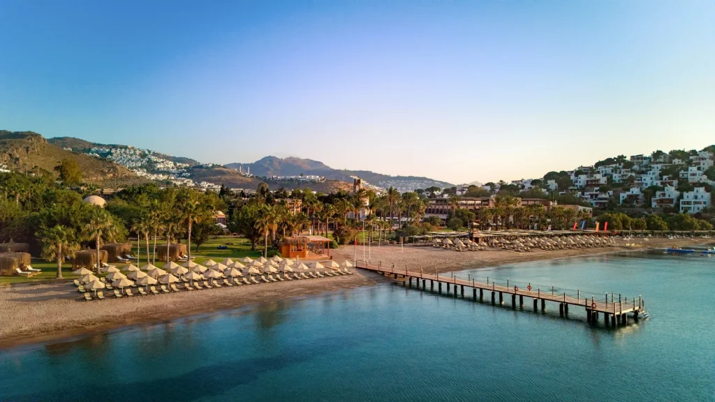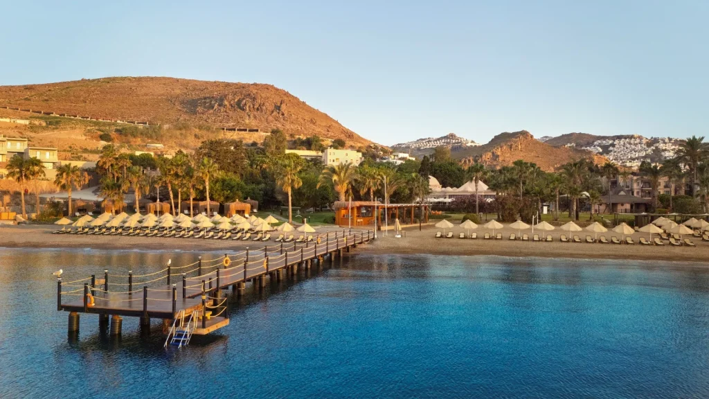 Hotelul Selectum Collection Bodrum este pozitionat cu acces direct la o plaja nisipoasa premiata cu Steagul Albastru, garantand standarde ridicate de curatenie si siguranta. Aeroportul Milas-Bodrum se afla la aproximativ 55 km distanta, iar centrul orasului Bodrum, renumit pentru viata sa nocturna vibrant, magazine si restaurante, este la 18 km. Statiunea Turgutreis, cu bazarul sau pitoresc si portul plin de barcute, se afla la doar 11 km. Microbuzele locale si taxiurile asigura legatura facila cu imprejurimile, astfel incat explorarea Peninsulei Bodrum este la indemana oricand doresti o evadare din complexul hotelier.