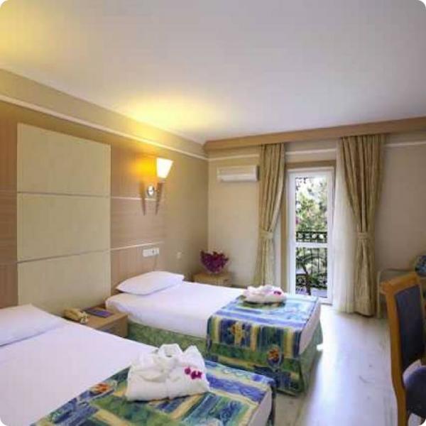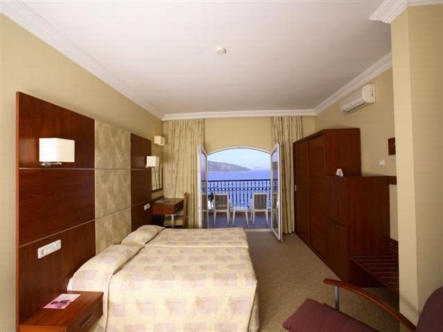 Camerele luminoase de la Ersan Resort au ferestre din podea pana in tavan, cu vedere la Marea Egee, gradinile botanice sau la piscina. Camerele sunt dotate cu aer conditionat si decorate in culori naturale.