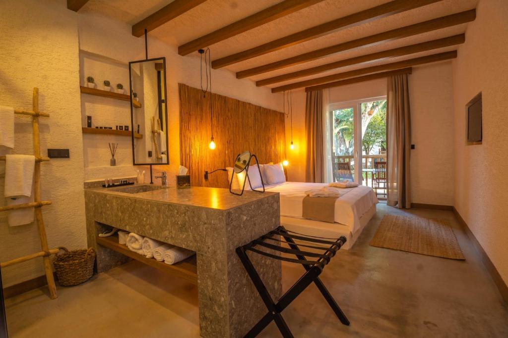 Camerele au aer condiționat, pardoseală din gresie, mobilier din lemn și ferestre din podea până în tavan. Toate camerele includ TV prin satelit, minibar și baie privată. Unele camere au vedere la grădinile cu palmieri.