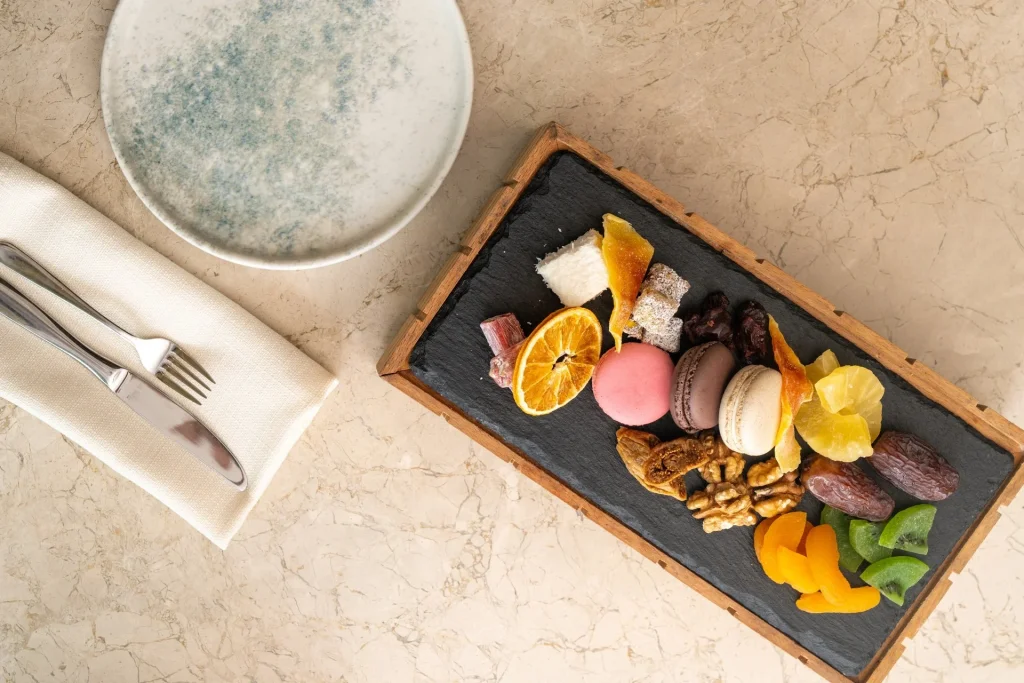 Le Blanche Island functioneaza in regim Ultra All Inclusive 24 de ore, unul dintre cele mai generoase de pe Riviera Turca. Mesele principale se servesc sub forma de bufet bogat in restaurantul principal, cu sectiuni dedicate copiilor, regim alimentar si colt vegetarian: micul dejun intre 7:00-10:00 (cu prelungire pana la 10:30), pranzul intre 12:30-14:00 si cina intre 19:00-21:00. In plus, la miezul noptii (00:00-01:00) sunt disponibile supe in regim de bufet. Cele 4 snack-baruri functioneaza intre 12:00-17:00, casa de clatite turcesti este deschisa intre 11:00-16:00, iar statia de kumpir (cartofi copti) intre 16:00-17:00. Restaurantul principal este completat de 6 restaurante a la carte cu rezervare prealabila necesara — un restaurant pe sejur este inclus gratuit, restul contra cost. Bauturile racoritoare nelimitate si bauturile alcoolice locale si selectate din import sunt incluse in pachet. Barul din hol functioneaza non-stop (24h), barul la piscina intre 10:00-23:00, barurile de plaja intre 10:00-17:00, discoteca intre 23:00-02:00, iar barul pentru copii intre 10:00-16:00.
