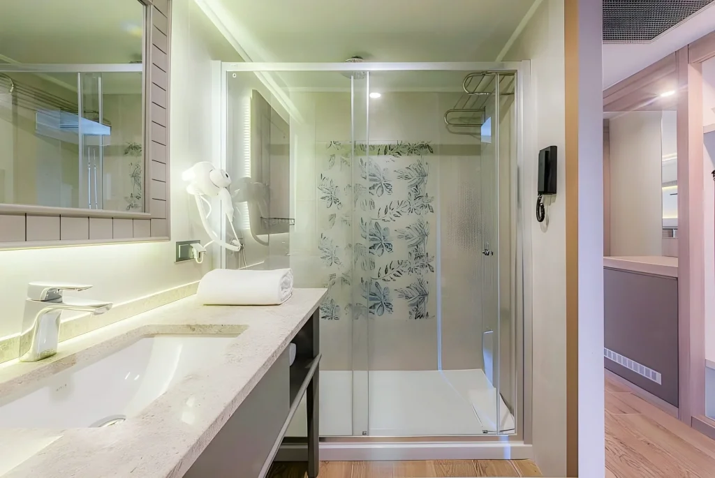 Suita Junior – 45 m², configurat? cu un dormitor ?i o zon? de locuit generoas?, aer condi?ionat individual ?i posibilitate de camere conectate, perfect? pentru familii sau cupluri care doresc lux ?i intimitate. Hotelul pune la dispozi?ie ?i 4 camere adaptate pentru oaspe?ii cu dizabilit??i, la cerere ?i confirmare prealabil?.