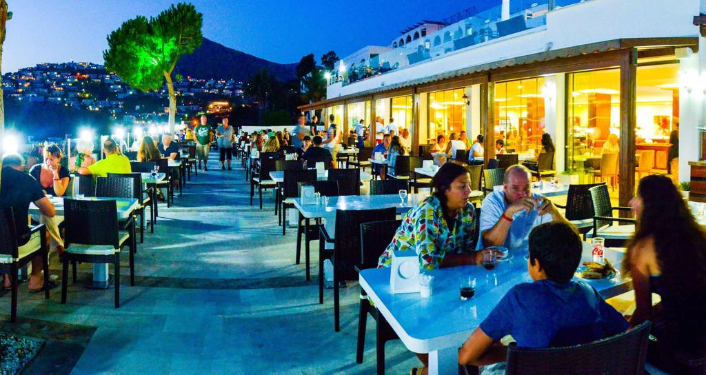 Restaurantul Pinara servește masa tip bufet. Vă puteÈ›i bucura de o băutură răcoritoare sau de gustări la barul de la piscină sau la barul de pe plajă. Hotelul găzduiește și o discotecă.