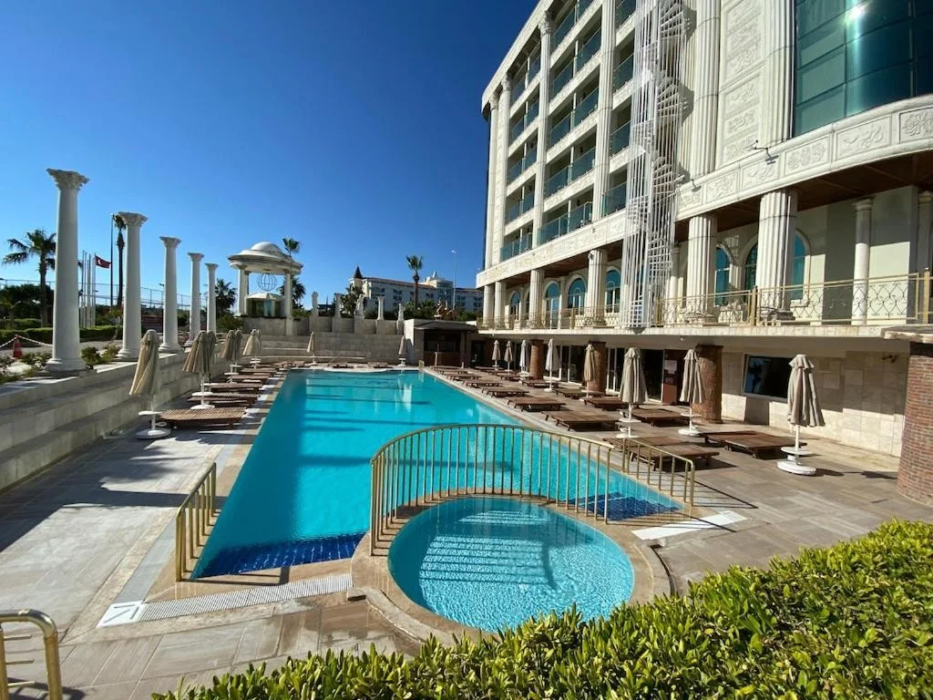 Hotelul pune la dispozi?ia oaspe?ilor o gam? larg? de facilit??i menite s? transforme fiecare zi de vacan?? într-o experien?? memorabil?. Complexul dispune de piscine exterioare cu ?ezlonguri, umbrele ?i prosoape gratuite, un parc acvatic ?i o piscin? dedicat? copiilor. Restaurantul principal, completat de 4 restaurante à la carte, asigur? o experien?? culinar? variat?, iar barurile, inclusiv un lounge bar cu serviciu nonstop, garanteaz? c? oaspe?ii nu r?mân niciodat? f?r? o b?utur? r?coritoare. Holul de intrare g?zduie?te o recep?ie modern?, iar în incint? se reg?sesc ?i un coafor, magazine, loc de joac? pentru copii ?i o sal? de conferin?e. Wi-Fi gratuit este disponibil în întregul hotel. Centrul de wellness ?i baia turceasc? (hammam) completeaz? oferta de relaxare, cu proceduri disponibile contra cost.
