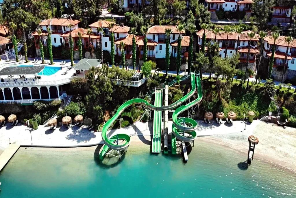 A?ezat pe o peninsul? privat? de o frumuse?e aparte, Club & Hotel Letoonia ofer? o experien?? de vacan?? cu adev?rat exclusivist?, departe de agita?ia sta?iunilor obi?nuite. Clasificat la 5 stele, acest resort all inclusive din Fethiye îmbin? arhitectura tradi?ional? turceasc? cu un cadru natural spectaculos, înconjurat de vegeta?ie luxuriant? ?i cu acces la trei plaje private. Ideal pentru familiile cu copii, dar ?i pentru cuplurile care caut? lini?te ?i confort, Letoonia reprezint? una dintre cele mai complete destina?ii de sejur din regiunea Egeei turce?ti.
