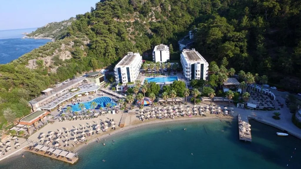 Hotel Turunc se bucura de o pozitie privilegiata chiar la malul marii, cu plaja situata direct in fata hotelului. Statiunea Turunc face parte din zona Marmaris, unul dintre cele mai apreciate colturi ale coastei egee turcesti. Centrul orasului Marmaris se afla la doar 1 km distanta, accesibil rapid cu microbuzele sau barcile locale care circula regulat, transformand fiecare iesire intr-o mica aventura. Optiunile de cumparaturi se gasesc la 500 de metri de hotel, iar aeroportul cel mai apropiat se afla la aproximativ 120 km, ceea ce face transferul usor de organizat. Verdeata abundenta din jur, apele cristaline si atmosfera autentica a statiunii Turunc completeaza un tablou greu de uitat.